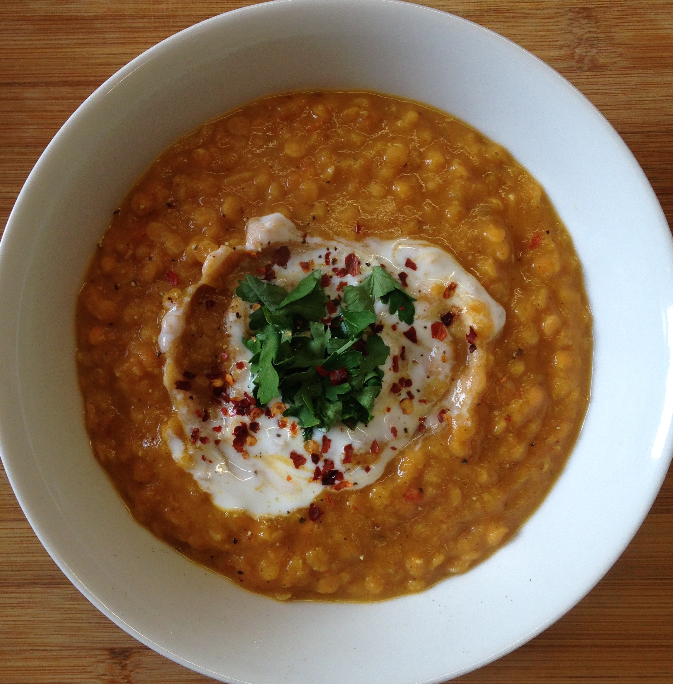 After the 15 minutes is up, serve into bowls with a big ladle, swirl through some natural yoghurt and top with the fresh parsley. You can either feed three other people with your tasty soup, or keep it in the fridge and use throughout the week!